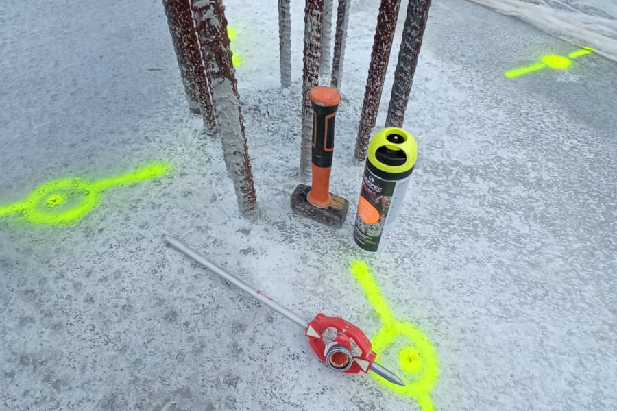 - Z jej pomocą wykonuje się odblaskowe oznaczenia podkreślając niebezpieczne strefy, zaznacza pola pod wykopy lub znaczy dokonane pomiary